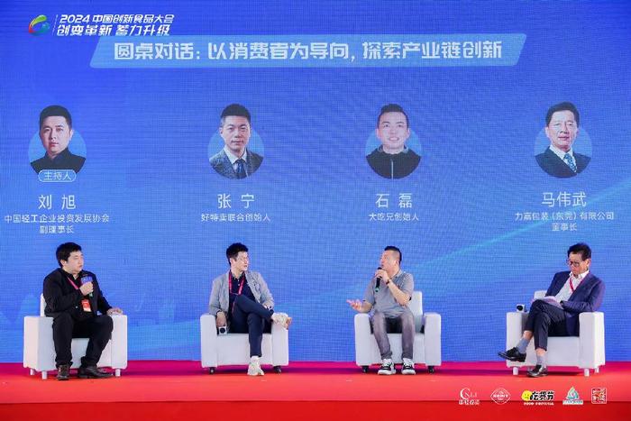 在“以消费者为导向,探索产业链创新”圆桌对话环节,中国轻工企业投资发展协会副理事长刘旭与好特卖联合创始人张宁,大吃兄创始人石磊,力嘉包装(东莞)有限公司董事长马伟武等嘉宾共同探讨,洞悉消费者内心真正的需求,探寻企业的创新方向,为企业注入新活力带来启发。