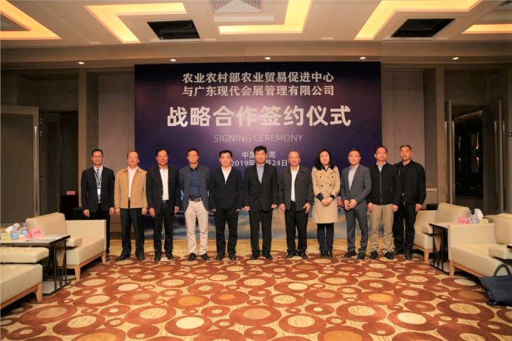 12月24日,农业农村部农业贸易促进中心主任张陆彪率领农业贸易促进中心、广东省农业农村厅领导,在东莞市委常委杨东来、市农业农村局局长张永忠、厚街镇镇长叶可阳、镇人大主席方活力的陪同下莅临我司调研,并召开2020中国国际食品配料博览会筹备工作协调会和举行战略合作签约仪式。