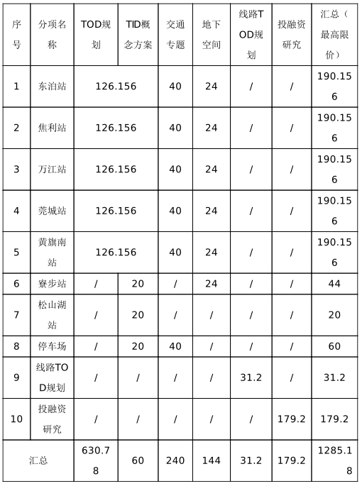 由于 鸿福路站周边规划建设较成熟,不纳入本次站场TOD综合开发规划研究范围。因此本次投融资实施方案的收益测算来源于“七站一场”的综合开发收益。