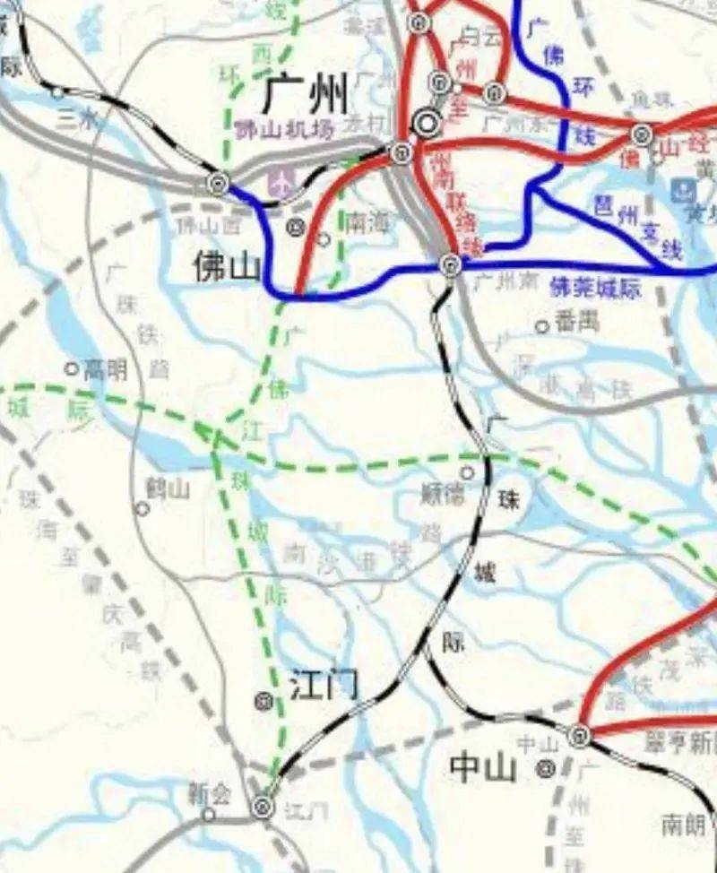 图中红线为佛穗莞城际原走向,西至佛山东平新城